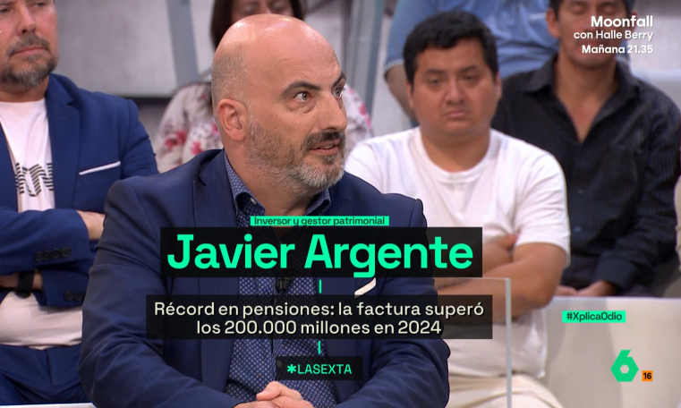 Capturas del paso por el programa Xplica de LaSexta, donde Javier Argente participó en un debate dando su punto de vista del problema de las pensiones y sus problemas actuales. Sus reflexiones incluyeron la necesidad de reformar las políticas para asegurar un futuro más estable para las generaciones venideras, subrayando que es necesario generar negocio y puestos de trabajo para los jóvenes.